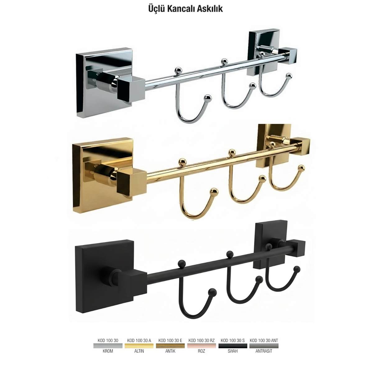 Defne Banyo Üçlü Kancalı Askı