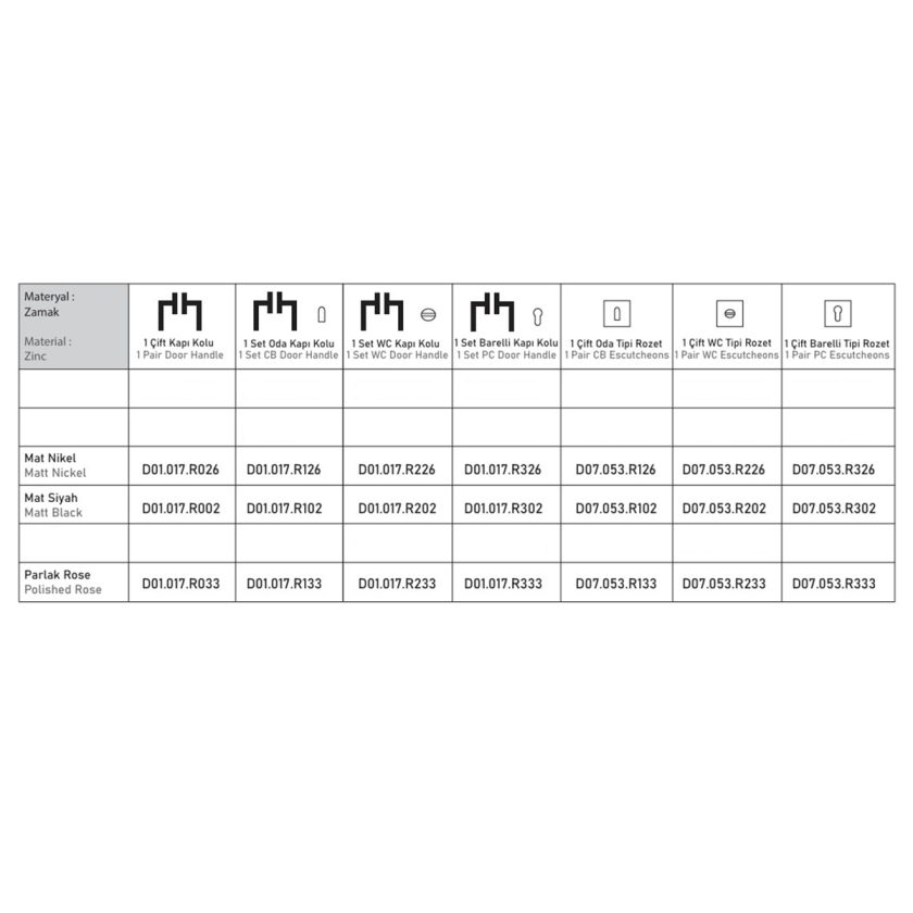 Renk | Mat Nikel, Mat Siyah, Parlak Rose |