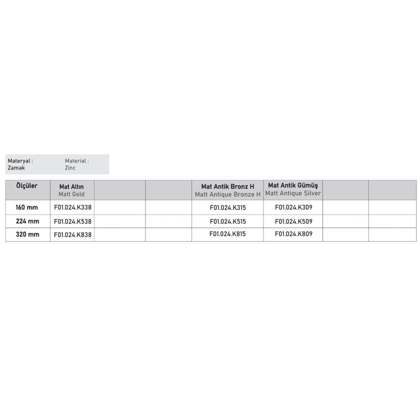 Renk | Antik Bronz, Antik Gümüş, Mat Altın |
