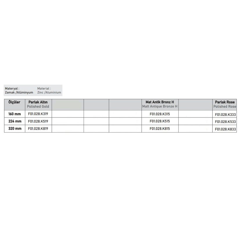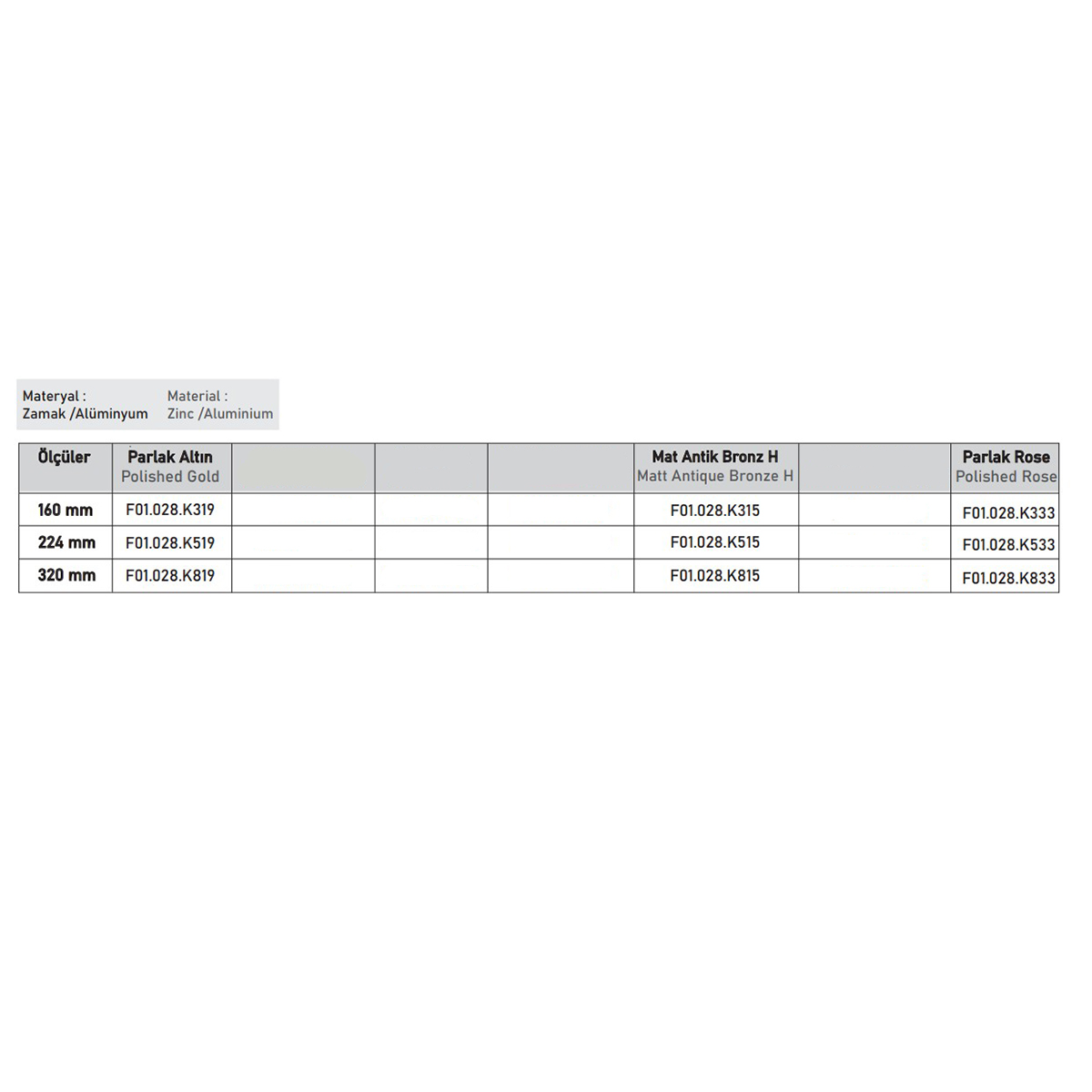 Renk | Antik Bronz, Parlak Altın, Parlak Rose |