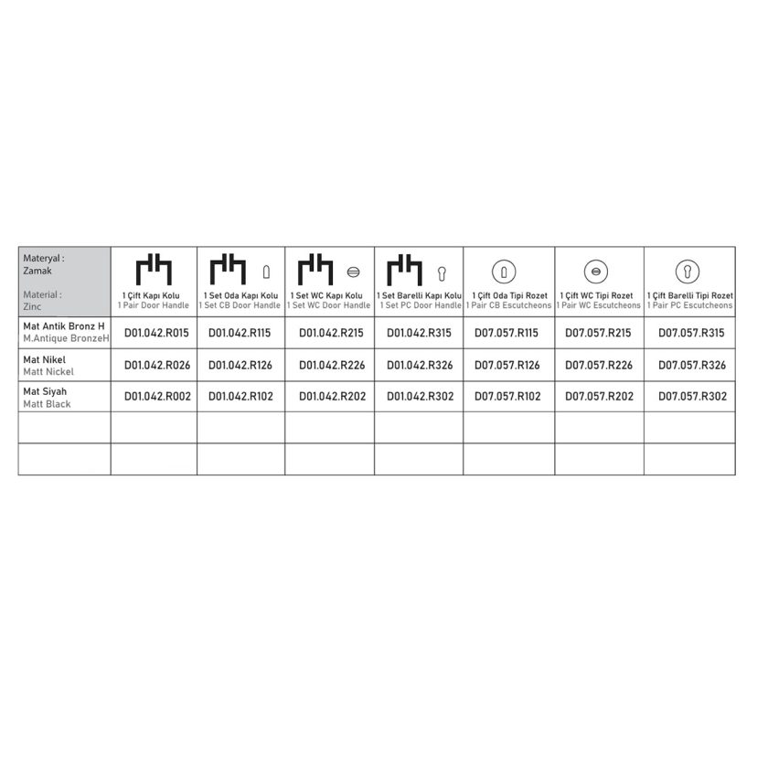 Renk | Antik Bronz, Mat Altın, Mat Siyah |